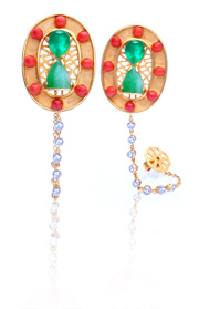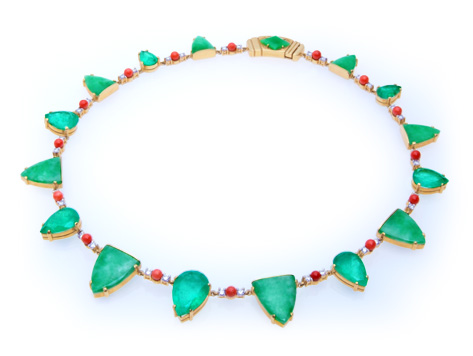 san hô, lục bảo ngọc, kim cương, ngọc thạch trắng, và vàng, tượng trưng cho niềm chân phúc vĩnh cửu khi