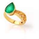 Dây chuyền, vòng đeo tay và nhẫn làm bằng vàng 22k cẩn lục bảo ngọc. Kiểu đơn sơ nhưng thanh nhã và những đường bóng láng phản ảnh nét cắt rõ ràng, tính chất thẳng thắn của con người đương thời.