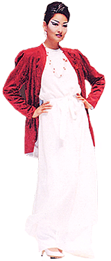 white dress with coffee jacket and ivory dress with burgundy jacket.