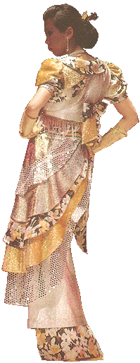 意謂把眾生都「度」空!下身的斜型弧度搶眼但含蓄,不是一定的排法,和諧而有韻味,女性氣質表露無遺。上身的布面交錯,剪接配合得當。泡袖的設計高貴,袖口的位置恰到好處。上下身的中空部份鑲珠鍊,優雅而婉約,喚起女性天生的女性美,雍容雅致,有母儀天下的尊貴。