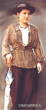 A beige shirt made from mixed yarn fabrics comes with a pair