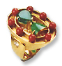 rich combination of coral, jade, diamonds, emeralds and gold represents