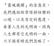 ◆「我們做事的時候,把生命力、把快樂帶到這個世界來,而不是抄襲已經很黑暗的這個世界。」(原文為中文)