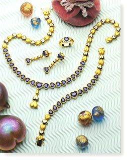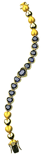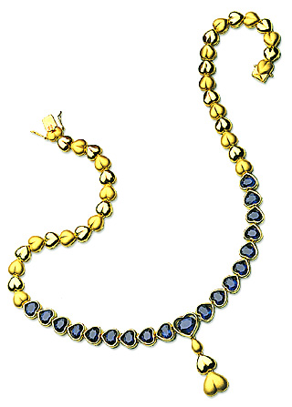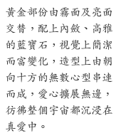 Made of gold and embellished with sapphires, this collection includes a necklace, a bracelet, a pair of earrings and a ring. Stringing together the conservative yet elegant sapphires and gold hearts with alternating satin and glossy finish, it reveals diversity within a simple design. With numerous hearts extending toward all directions, True Love permeates into the whole universe.