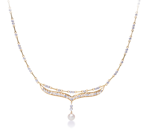 arcs carved in gold transform into elegant wings that carry a Muni-pearl