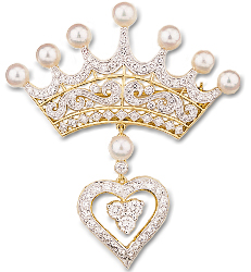 This crown of the universal queen, embedded with an eternal loving heart, brilliantly sparkles with love reminding people of their glorious heavenly Home. The pearls and diamonds radiate the glory of the sun and moon, signifying our light from deep within.